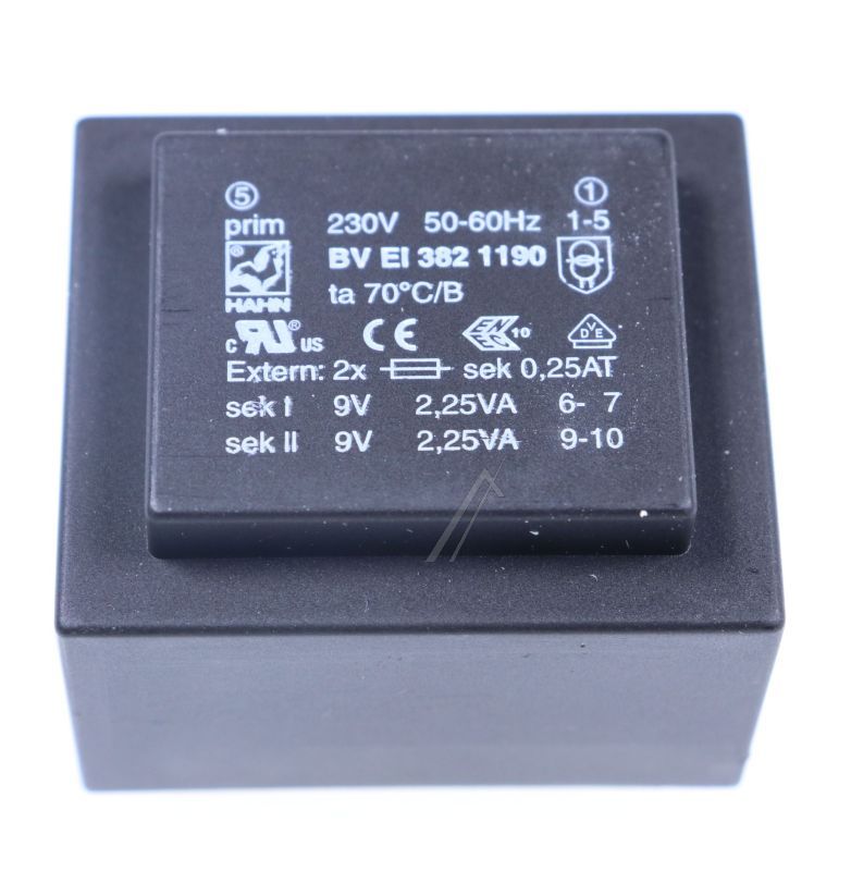 2X9V-2X250MA BVEI3821190 PRINTTRAFO 230V EI38 4,5VA 35,1X41,0X28,1MM